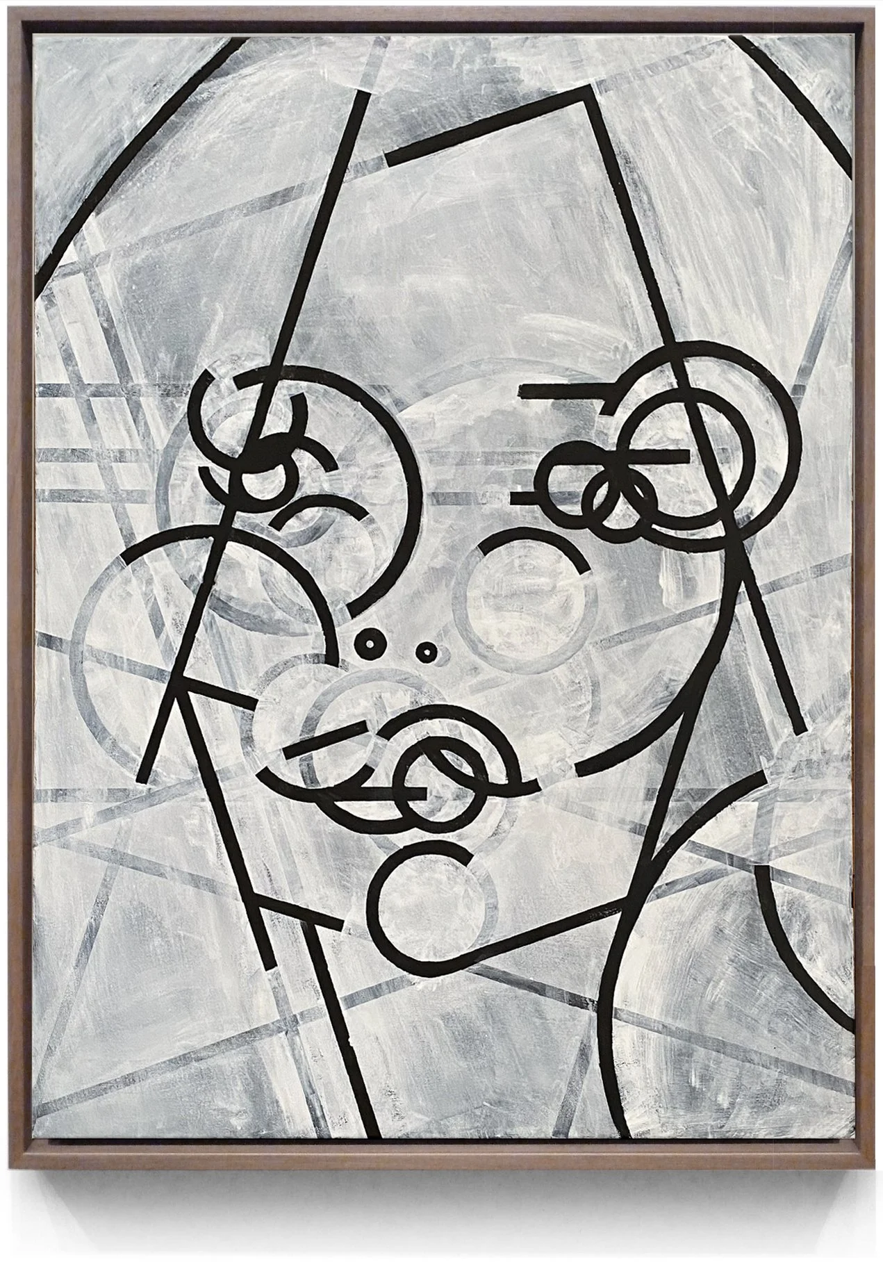 These paintings were inspired by Franz Kline's technique, incorporating black and white layers to erase or add shapes. The lines are actually composed of juxtaposed shapes in layers, creating the lines.